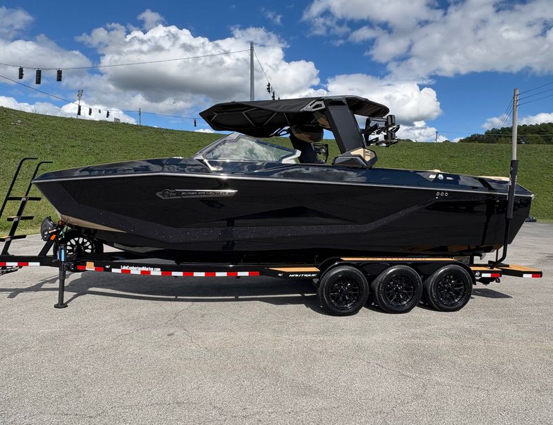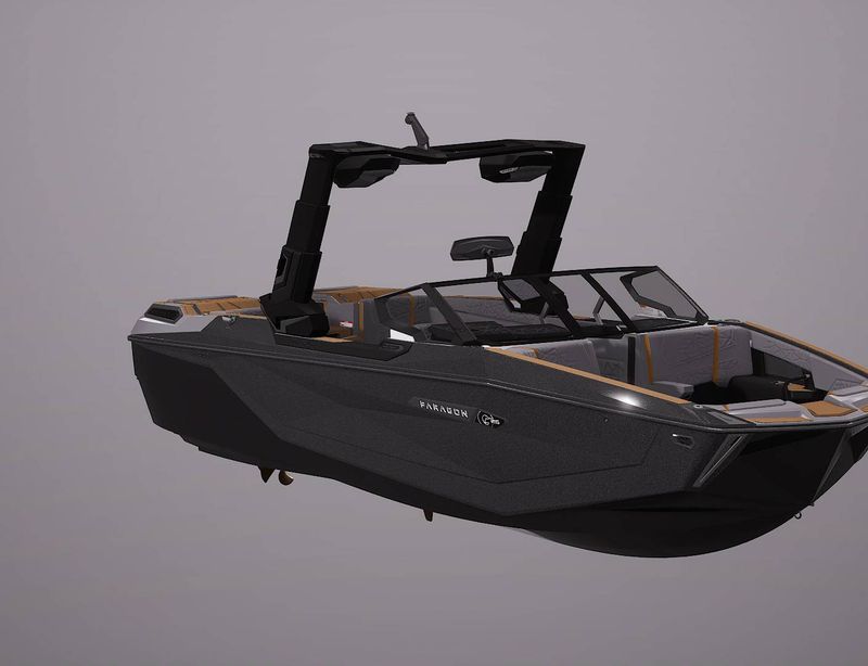 - ColorsSahara Sand/Jet BlackHorsepower630HPEngine Hours0PropulsionInboardFuel TypeGasLength25'Length with Platform27'5"Beam102"Draft34.5"Dry Weight8400lbsPerson Capacity19Weight Capacity2800lbsFuel Capacity88galMax Ballast (with Supplemental)3400lbsHull MaterialFiberglass